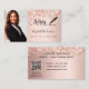 En elegant och ett glamoröst affärskort på en faux-metallisk ro-tittar bakgrund som dekoreras med faux glitter stoft på framsidan och en svart namnteckning signeringspenna. Elegant-handskript i stil. Anpassa och lägg till ditt namn, text, profilfoto, kontaktinformation och din egen QR-kod till webbplatsen adress.