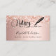 En elegant och ett glamoröst affärskort på en faux-metallisk ro-tittar bakgrund som dekoreras med faux glitter stoft på framsidan och en svart namnteckning signeringspenna. Elegant-handskript i stil. Anpassa och lägg till ditt namn, text, profilfoto, kontaktinformation och din egen QR-kod till webbplatsen adress.