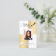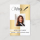 En klassisk vit och faux guld färg blockbakgrund. Anpassa och lägg till foton och text på framsidan. Baksida: Bakgrund för Faux guld. Mallar för Ditt namn, titel, mobilt nummer, e-post och webbplats adress, din egen QR-kod till webbplatsen eller social-mediekontot.