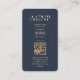 Modern notarius publicus, Mörk blått Guld Quill Monogram-affärskortet med QR-kod. Känn dig fri för DM om du behöver lägga till medieikonen för social innan du gör ett köp.