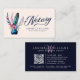 Modern, Elegant Watercolor Quill Feather Monogram-Affärskort. Den här sofistikerade designen har en vintage luddpenna och bläckpenna med bläck, som är försedd med blommigt inslag på rosa. På framsidan visas "notarius publicus" i trendigets handskrivna typografi, bredvid ditt namn och din titel. Anpassa baksidan med en QR-kod, kontaktuppgifter och ytterligare information om en sjabbig bakgrund. Affärskortet är idealiskt för notarius publicus, mobila notarier, låneundertecknare agent med mera, och kombinerar elegans och professionalism för att ge ett bestående intryck. Originalteckningar efter Bold_Design_Studio.
