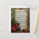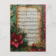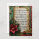 Ett lagerkort med strukturerat rött papper, guldfärger, grönt bladsmönster och notblad. Prydd med gyllene snöflingor, röda bär, tallgrenar och en röd slinga med guldfärgade kanter, vilket skapar ett festligt jul tema.