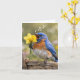 Note Card Bluebird Singing with a Yellow Daffodil Kort