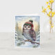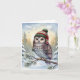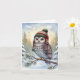 A charming owl wearing a winter hat with earflaps, perched on a pristine snow-covered branch, surrounded by a tranquil snowy forest that radiates peace and beauty in watercolor