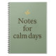 The “Notes for Calm Days” notebook by Auréline Studio brings simplicity and serenity to your daily routine. With its soft sage green background, elegant serif typography, and delicate golden leaf detail, this minimalist design invites peace and mindfulness to every page.