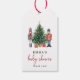 Nötknäppare Baby Shower Presentetikett. Denna söta och unika högtids nötknäppare baby shower presentetikett har handmålade akvarell nötknäppare leksoldater och ett vackert julträd. Hitta matchande föremål i julhögtiden Nötknäppare Kollektion.
