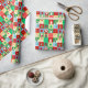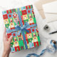 Festivt julmotiv med nötknäppare geometriskt mönster julpapper. Detta julmotiv har vektorillustrationer som visar en nötknäppare, uggla, present, julgran, tomte, tomtebiträden, en valp, ängel, bjällror, julgransprydnader och snö. Ho ho ho, God Jul!