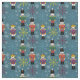 Använd detta nötknäpparetyg för allt ditt sy för helgdag projekterar. Designen presenterar ett repetitionmönster med nötknäppare och mång--färgad snöflingor mot en blåttbakgrund.