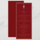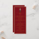Lägg till en touch av tidlös julstämning på ditt julbord med denna meny för julmiddag med en handmålad akvarell nötknäppare i en traditionell röd, guld och svart färgpalett. Den eleganta designen innehåller anpassningsbar text som läser Meny i guldbokstäver, tillsammans med redigerbara sektioner för förrätter, huvudrätt, tillbehör, desserter och drycker, vilket gör det enkelt att anpassa för din julfirande. Den rika röda bakgrunden och den klassiska typografin skapar en sofistikerad look som kompletterar festliga sammankomster, företagsfester, familjemiddagar och julfester. Perfekt för värdar, cateringar och evenemangsarrangörer som vill förhöja sin dukning med koordinerad dekoration. En del av Holiday Nutcracker Collection, denna meny passar vackert med matchande inbjudningar, pappers tallrikar, servetter, presentkort