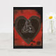 Nött bild av ett hjärta med keltisk knut på mörkröd bakgrund.