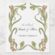 Fira din union med en blomstrande natur och konst med våra Art nouveau-Bröllopsetiketter. Framsidan har en lush och symmetrisk arrangemang av blommor i en rik av pastellulerat färg, inklusive koralltulpaner, himmel-blåa blommor, persikofärgade blommar och daffodil , som alla är svårsammanflätade med verdant grönt löv. Baksidan av kortet presenter är blommigtens motiv som kantas runt kant och ger en elegant ram åt bröllop. Utformningen inspireras av rörelsen Art nouveau, som är känd för sina stiliserade naturliga former, flyter kurvor och mjuk, mutad färg. Craftad för par som vill förse sin speciella dag med naturens skönhet och den klassiska sofistikeringen av 1900-talskonsten tidigt.