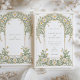 Den här inbjudan från elegant bröllop har en klassisk Art nouveau-design som är försedd med vackra daisy för elfenben och grönt. Kortets framsida visar invecklade blommönster som är sammanflätade med ett snyggt rullverk i mjuka pastellskuggor av elfenben och grönt. Den detaljerade utformningen skapar en tidlös och romantisk atmosfär, perfekt för ett sofistikerat bröllop firande. Baksidan av inbjudan fortsätter temat blommigt och belyser datumet i bröllop med en förfinad arrangemang av daisy och löv. Denna inbjudan är perfekt för par som söker en blandning av traditionell elegans och konstnärlig charm, och den är ett uttryck för romantik och naturens innersta väsen.