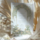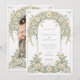 Den här krävande bröllopsinbjudan innehåller en fantastisk utformning av Art nouveau, som är försedd med en tunn daisy och lövmotiv. Framsidan visar en delikat blandning av mjuka gröntar, krämaktiga vita, och vidrör gyllene accenter, vilket ger elegans åt detaljerna kring bröllop. Den omvända sidan fortsätter temat med ett vackert fotografi av paret, där man fångar upp ett ömtåligt ögonblick omgivet av samma invecklade blommönster. Perfekt för ett vår- eller trädgårdsbröllop, den här inbjudan kombinerar klassisk charm med modern sofistikering.