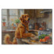 Add a lively and cheerful touch to your kitchen with this Nova Scotia Duck Tolling Retriever design featuring an energetic pup cooking in a cozy setting. With its vibrant coat, bright expression, and playful personality, this artwork captures the breed’s spirited nature.