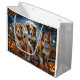 Släpp upp spookandan med den här eerie Halloween-designen med en hundar-förpackning under en mörk, månbelyst himmel, omgiven av flygande fladdermus och glödande pumpor. Perfekt för dem som kärlek en aning skrämmande roligt med sina hårigets vänner!