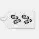 En för barn med novelty märkre i svartvitt av tomtens avtryck och Ho Ho Ho i dem På motsatt sida ser du fotavtrycken fortsätta