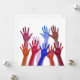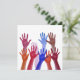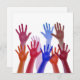 Nr 01: Rörelse och enhet. Bräckt, färglöst händer når uppåt, överlappande i skuggor från rött till blått. Det arrangemanga skapar en dynamisk känsla av rörelse och enighet.
