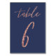Nr 6 - Glam Glitter Rosa Guld och Blå Bröllop Bordsnummer