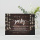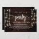 Nu är det dags att åka till party, Bröllop Elopement annonsbrev/inbjudningskort, i Rustic farm Wood, String Ljus design. Det här är perfekt för ditt bröllopsmottagande och party efter bröllop firande. Lägg till information i matchande teckensnitt/text. #TeeshaDerrick
