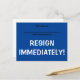 Beställ vykortet och lägg till ditt namn. Skicka den till den hindrade Donald Trump. Be honom avgå. All vinst från försäljningen av detta kort kommer att doneras till en progressiv sak eller till Joe Biden. Stödja även USPS genom att köpa frimärke. Det krävs bara en för att skicka den här posten.