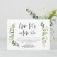 Modern svart script, sommar grönska lövrik tema, bröllops inbjudningskort (nu låt oss fira). Det är perfekt för din bröllopsfest / efterbröllopsfirande. Lägg till dina detaljer i matchande svart teckensnitt.