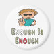 Tillräckligt med design visar en säker person och lycklig håller handen uppe. Under orden "Tillräckligt är tillräckligt" står budskapet med "nej"-breven markerat. Det är dags för allt nonsens att sluta. Nu räcker det.