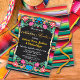 En färglös mexikansk bröllopsinbjudan med aztec matta bakgrund. Med ljus papel picado-inspirerade blommor, faux glitter-accenter och Aztec mexican matta-bakgrund.
