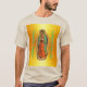 Nuestra Señora de Guadalupe T-Shirt ... Dam i Guadalupe ... I december 1531 dök Virgin Mary upp på en backe till en Aztec och bad honom bygga henne ett kapel där. Hon bar ett plagg från ro färg med plantering av växter för hennes världsliga förening och en turkosblå rob med guld-stjärnor för hennes Himmelska förening. När den spanske ärkebiskopen krävde bevis på ett mirakel, gav hon det spanska ro som Aztec tog med till den spanska ärkebiskopen i sin kläder eller tilma ... När ro läckte ut till golv dök det upp en bild av Jungfru Mary på kläktaren. Denna bild finns fortfarande innesluten på den altare av kapellet som byggdes på backe i Mexico City. Denna bild är i dag en av de mest populära av bilder i världen.