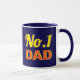 Nummer 1: Blågåva från Pappa för Pappa Fars dag Mugg. Nummer ett pappa mugg, i marinblå text, gult och orange, gåva till fars dag eller Pappa födelsedag.