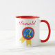 Underbaren för Fars dag eller Pappa födelsedag är att det här kaffet mugg har ett rött, blått och gult belöningsband som stater är "nummer 1 Pappa". Över menyfliksområdet står pappa namn skrivet med rött kursivt teckensnitt.