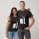 Svart T-skjorta med "Pappa du är #1" som är fäst på framsidan i fet, röd och vit typografisk design. Underbar gåva till fars dag eller födelsedag.