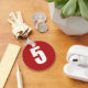 Stor och fet nummer 5 i vitt på mitten av den röda bakgrundsknappens nyckelkedja. Med den här numrerade nyckelkedjan kan du ha ditt turnummer eller ditt favoritnummer överallt. Njut av och ha roligt att blanda och matcha med andra objekt från vår numrerade serie i vår butik Grafigodis. Dessa numrerade objekt kan hjälpa dig att enkelt klassificera och ordna saker. Det är också ett bra val för en liten present och gåva.
