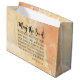 Den stora presentväskan med inspirationcitattecken skildrar en enkel vattenfärgad bakgrund i blekens färg av jordton och en modern skriptutformning. Den har den Åroniska välsignelsen från Bible Verse Numbers 6:24-26: "Må Herren välsigna dig och behålla dig; Må Herren få ansikte att skina på dig och vara vänlig mot dig; Må Gud vända ansikte mot dig och ge dig fred."