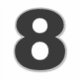 Nummer åtta. Nummer 8 Individuellt nummer som klistermärke. Black and White. 8 x 8 tum
