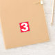 Nummer tre. Nummer 3 Individuellt nummer som klistermärke. Röd och vit.