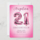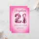 Fira en milstolpe i jakt på stil med vår nummerballonger 21:a födelsedagsinbjudan! Designat med faux metalliska rosa vattenfärgsballonger anger det öga-fångande inbjudan tonen för en roligt och ett oförglömligt firande. Rosa och pulserande vattenfärgskonstruktion ger en roligt och gigantisk fläkt, medan de fet 21-talballongen står i centrum - perfekt för att markera detta gång-i-a-livstid-ögonblick. Namn i ett vackert och gigantiskt skript. Här kan du välja mellan olika hörn i stilarna, som visas med rundade hörn. Oavsett om du planerar en chic cocktail party, en trädgårdssamling eller middag firande med familj och vänner, ger inbjudan bara högerna balans mellan lekfull och polerad. Helt anpassade med ditt namn, datum/klockslag och party, det är enkelt att göra det unikt för dig. Utskriven på högkvalitativ papper med levande färg-trohet kommer inbjudningarna att se ut som fantastisk som din händelse känner. Gör det ännu speciellare att göra 21:an mer - inbjudan dina gäster med en design som är lika livfull och snyggt som du!