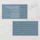 Ett affärskort bör vidarebefordra information innan man har en chans att ens läsa informationen. Detta kort fyller detta syfte med sina sifferkolumner skapar detta ett perfekt-kort för en revisor, bokhållare eller företag som hanterar nummer, kredit och debiteringar. Nummerkolumnen placeras mot en ljusblå bakgrund som är något smalare och där all kontaktinformation skrivs ut till lämnat. Omvänt visas ett nummerintervall som täcker hela fullt. Tillgängligt med matchande produkter.