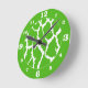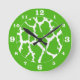Den här djurskrivarklockan har en grön och vit giraffdesign för kalk. Det yttre ring har vita siffror att markera timmarna. Det större antalet markerar varje kvart.