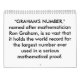" NUMRERAR GRAHAMS," namngett efter mathematicianen Ron Graham, är så vast att det rymmer världsrekord för det störst numrerar någonsin använt i ett allvarligt matematiskt preparerar. Grahams numrerar är mycket större än andra stort antal liksom en googol och en googolplex. I faktum är observableuniversum alldeles litet att innehålla en skriftlig framställning av Grahams numrerar.