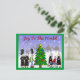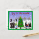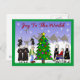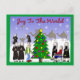 De katolska nunnornas julkort och gåvor, "Joy to the World", nunnor i svarta vanor som hjälper äldre utomhus att se Julgran, tre visare i bakgrunden. Konst skapat av Gail Gabel.