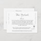 Reverse features the remainder of information for a wedding enclosure card displayed in an elegant silver-colored font. Headings are displayed in in same Nuptial font while the other information is featured in a print. Addresses are displayed in bold.