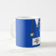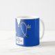 Personlig sjuksköterskeuppskattning eller sjuksköterskeutbildning studenten keepsakpresenten mugg med blå sjukhusskrubbar, stetoskop och lustigt schweiziskt armé knivar. Så här anpassar du redigeringstexten för att lägga till namn.