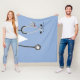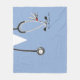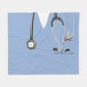 Creative nurse blanket keepsake gift featuring blue hospital scrubs, a stethoscope and funny Swiss Army knife illustration. Edit text to customize name or otherwise personalize.