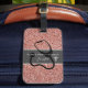 Behålla dina anteckningar och dokumentation i stil med sjuksköterskan Ro Guld Glitter Personlig Luggage Tag. Det är designat med rosa faux bakgrund och grått vågrät rand på mitten. En svart stetoskoskopsilhuett och en vit caduceus-symbol med "sjuksköterska" är i vit text med minsta möjliga tryckbokstäver. Anpassad med namn i ett vitt skript med bokstäver. KLICKA PÅ ALTERNATIVET "PERSONALISERA MALL" OCH ANGE NAMN.