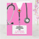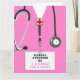 Vårdkort i studenten med rosa sjukhusskrubbar. Så här anpassar du redigeringstexten för att lägga till namn i sjuksköterskegrad.