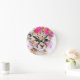 Nursery Clock Baby Cheetah med Rosa Flower Krona Rund Klocka