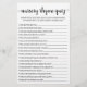 Nursery Rhyme Quiz Baby Shower-spel med svar