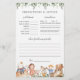 I dagdrömmar med temat babyduschförutsägelser och rådgivningsspel finns en illustration av vattenfärgsrytmen och vattenfärgen greenery eucalyptus garland och elegant handskrivet stil-typsnitt.