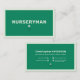 A minimalist green business card with a white flower in a pot for horticulturist or florist or anyone who works with flowers, but also garden designers, landscape architects, professional gardeners, and maintaining green spaces. On the back you can find full information decorated with icons.