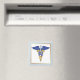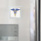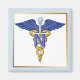 Den här sjuksköterskan Caduceus har guldormar som vrids runt en ljusblå personal med djupare blå upphöjd vingar och stor brev N.